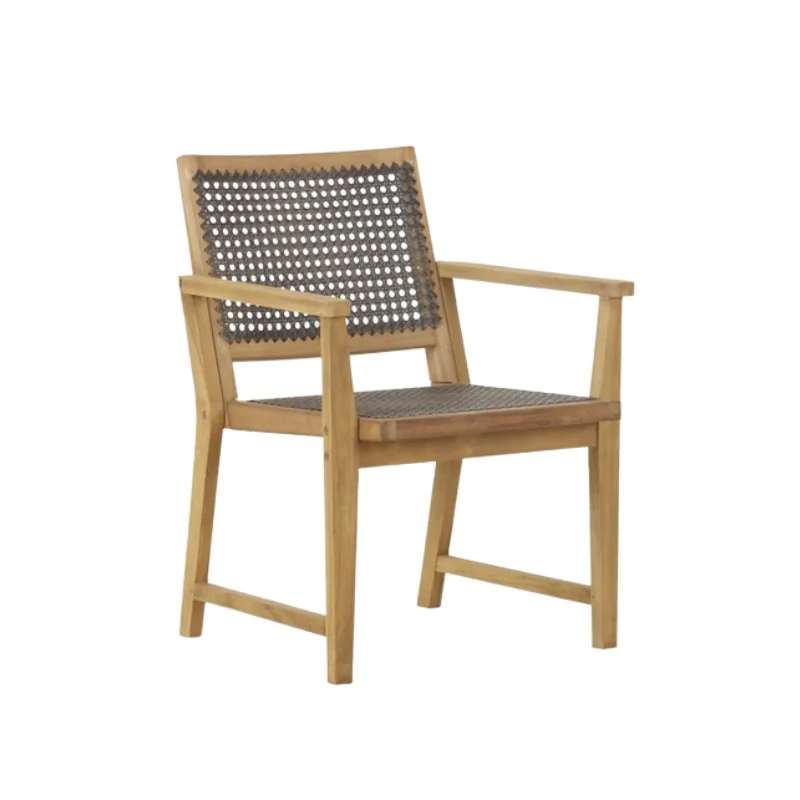 The Ashton Dining Chair offers a perfect blend of natural aesthetics and modern functionality. Crafted with a solid teak wood frame, this chair exudes durability and timeless beauty, making it an ideal addition to any dining space. The seat and backrest feature expertly woven rattan, providing both comfort and ventilation while adding a touch of vintage charm. The clean lines and minimalist design ensure it seamlessly complements various interior styles, from rustic to contemporary. Lightweight yet sturdy, the Ashton Dining Chair is a versatile choice for formal dining rooms or casual dining areas, enhancing the ambiance with its warm, natural appeal.