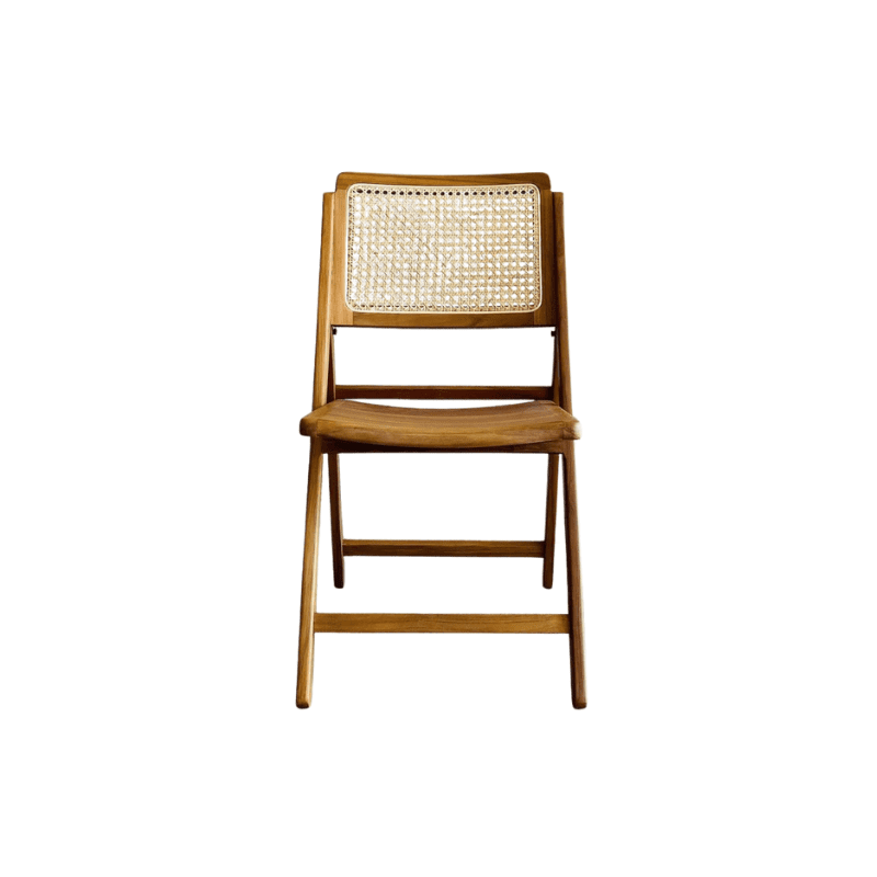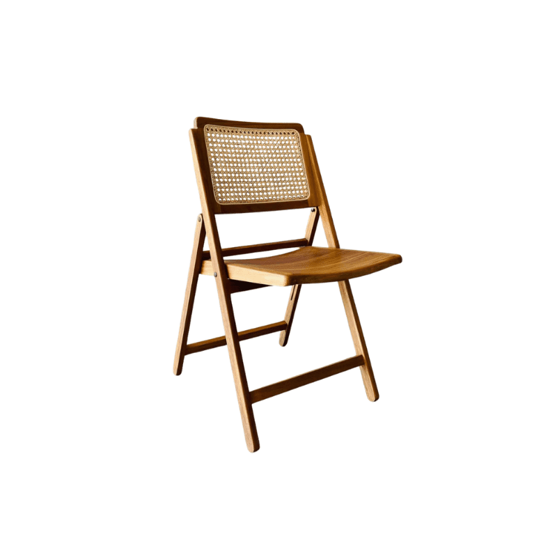 The Rossete Foldable Dining Chair with a solid teak and rattan base embodies the timeless mid-20th-century aesthetic. This chair combines clean lines with organic materials to create a harmonious design that is both functional and visually appealing. Its defining feature is the versatility to be used both indoors and outdoors, making it suitable for various settings. It reflects the characteristic mid-century optimism and functionality, where form and function blend seamlessly.